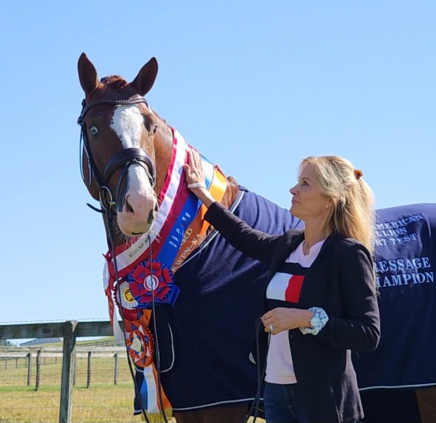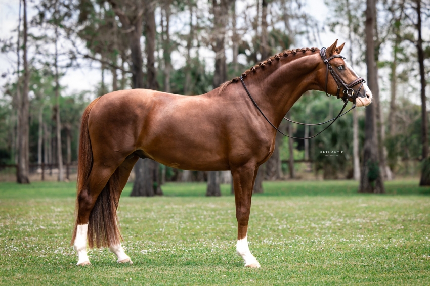 One of the top 4 yr olds in USA in 2022 after competing in Wellington, invited to attend the USEF Festival of Champions. Scores to 88%. Competed at Global Dressage, Palm Beach, Ocala.