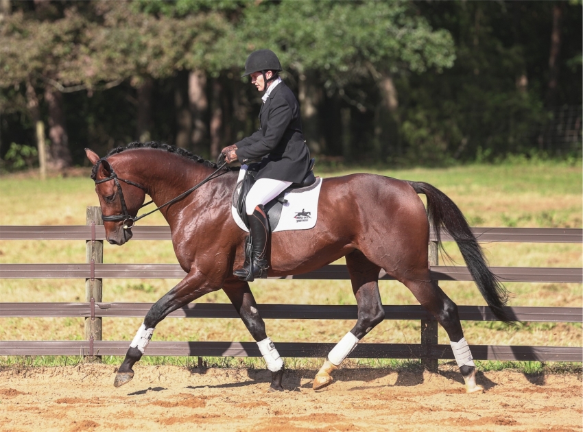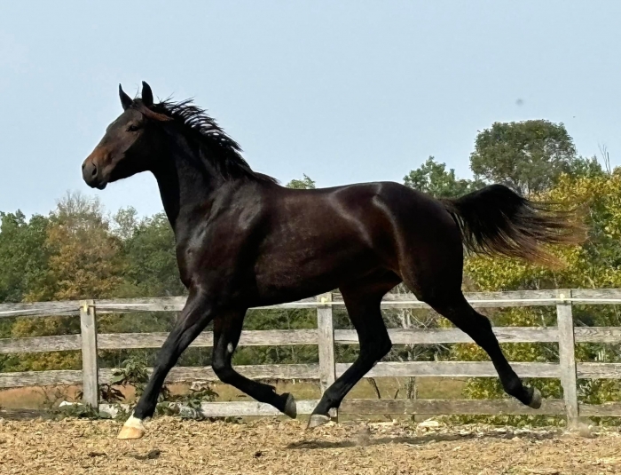 He is showing an aptitude for learning, and a talent for sport: jumping, dressage, foxhunting, etc. Very mellow and does not exert energy for shenanigans. No prep kind of show horse.
